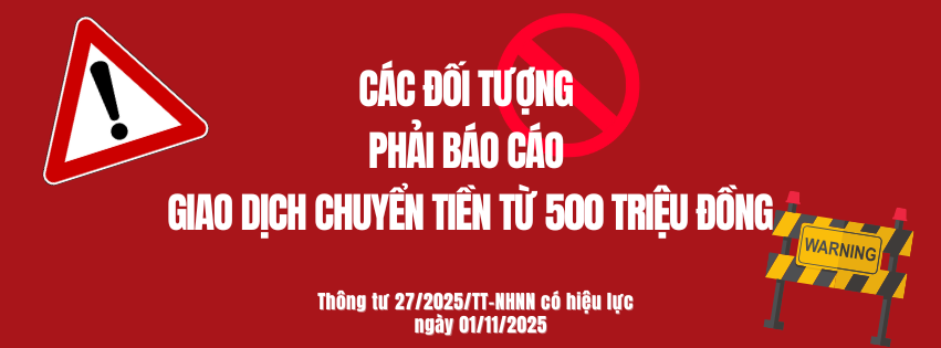 Tin tứcCÁC ĐỐI TƯỢNG PHẢI BÁO CÁO GIAO DỊCH CHUYỂN TIỀN TỪ 500 TRIỆU ĐỒNG 9 Tháng 10, 2025 - Công Phúc - 41 lượt xem